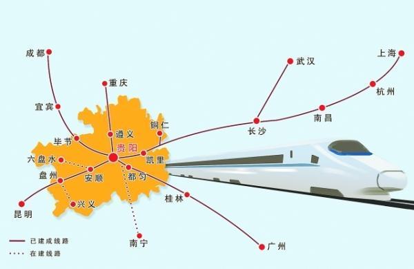 2014年12月,贵州首条高速铁路——贵广高铁建成通车,贵州进入“高铁时代”。2015年6月,沪昆高铁贵州东段开通,贵州由此融入全国高铁网。2016年12月,沪昆高铁贵阳至昆明段开通运营,标志着沪昆高铁全线贯通,我省在西南地区的陆路交通枢纽地位更为凸显。2018年1月,渝贵铁路全线开通运营,标志着以贵阳为中心的贵州高铁“大十字”形成。